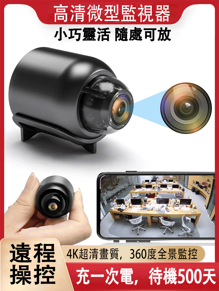 半小時前【免佈線免安裝】史上最小的監視器! - 史上最小的超清監視器!!一入組-NT$980