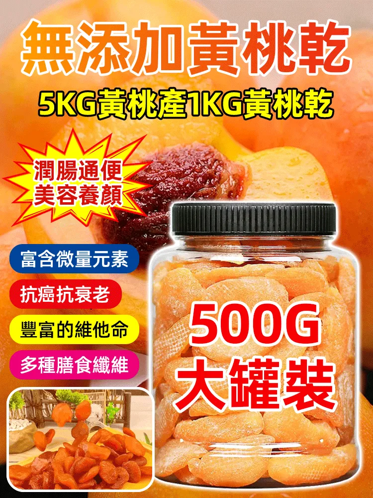 12分鐘前【限定狂促|特優級日曬黃桃果乾】果肉Q彈無添加|古法日晒蜜製 買2罐狂省549元!5KG新鮮黃桃濃縮成1KG精華,富含多種膳食纖維,潤腸通便、營養滿滿、健康加倍! - 【狂殺特賣】三入組 NT$1549